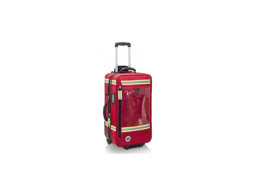 Tuto velkou zdravotnickou zásahovou brašnu lze použít jako batoh, lze ji táhnout na vestavěných kolečkách nebo ji lze přenášet konvenčně ve dvou ergonomických rukojetích. Zdravotnický batoh je vybaven skrytým systémem ramenních popruhů, který zabraňuje jejich zachycení o okolní předměty , když se nepoužívají. Stejně tak teleskopickou rukojeť lze v případě, že ji nepotřebujete, úhledně schovat do boční kapsy. Batoh lze otevřít po obvodu a umožňuje okamžitý přístup do hlavního prostoru a do tří průhledných přihrádek na zip. Brašna je také vybavena vnější kapsou se 4 rychloupínacími popruhy , barevně odlišenými kapsami na vybavení s průhlednými okénky, které umožňují snadnou identifikaci obsahu.