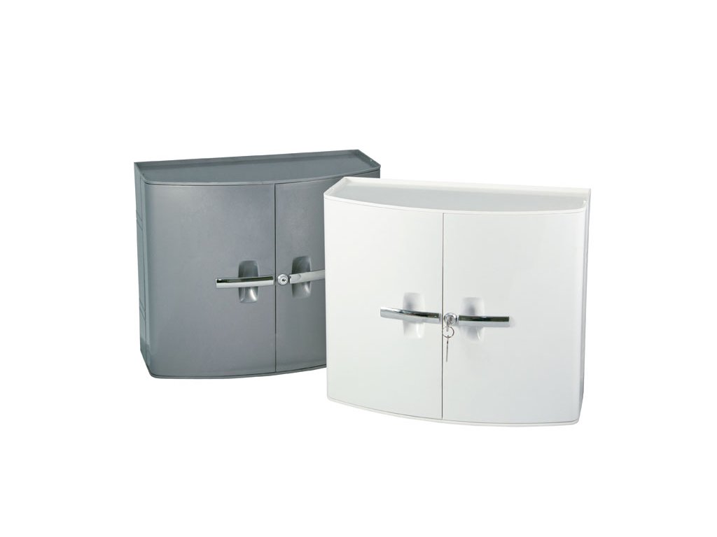 Vyrobeno z plastu s dvěma dveřmi s magnetickým zámkem. Dodává se s uzamykatelným zámkem a dvěma klíči.