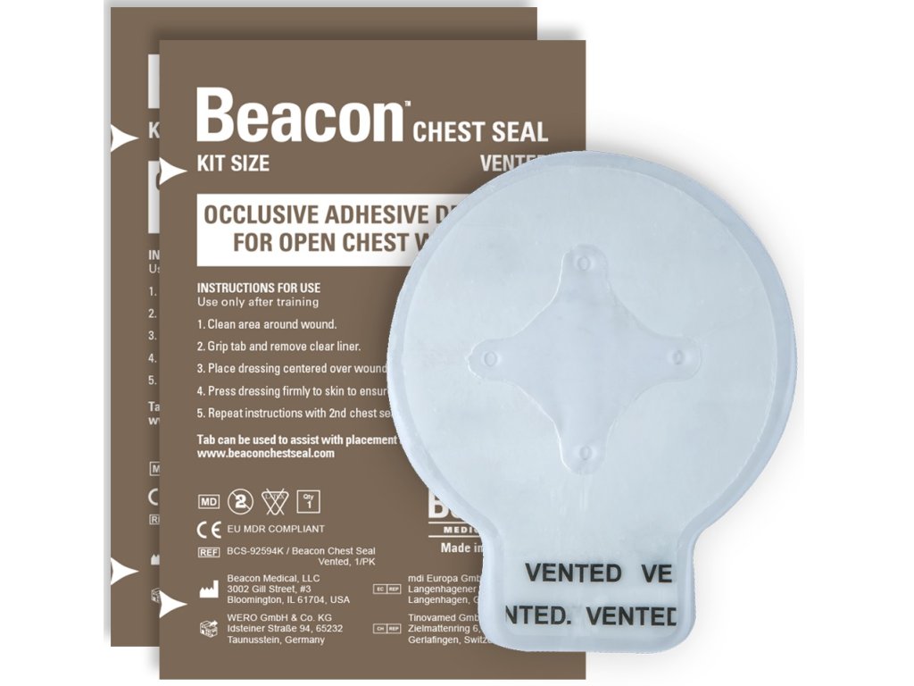 Beacon™ Chest Seal je pokročilý obvaz pro ošetření otevřených ran na hrudníku. Penetrující poranění hrudníku, která způsobují otevřené rány na hrudníku, mohou vést k tenznímu pneumotoraxu, jedné z nejčastějších příčin úmrtí na bojišti, kterým lze předcházet. Beacon™ Chest Seal je speciálně navrženo s lékařským hydrogelovým lepidlem, které je dostatečně silné, aby přilnulo ke kůži, která přišla do kontaktu s krví, potem, vlasy, pískem nebo vodou.