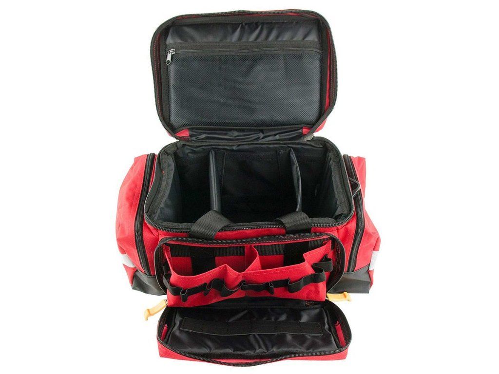 Odolná záchranářská brašna Lüttich určená pro lékaře a záchranáře. Brašna je vybavena ramenním popruhem. Textilní rukojeti pro nošení v rce lze spojit suchým zipem.
